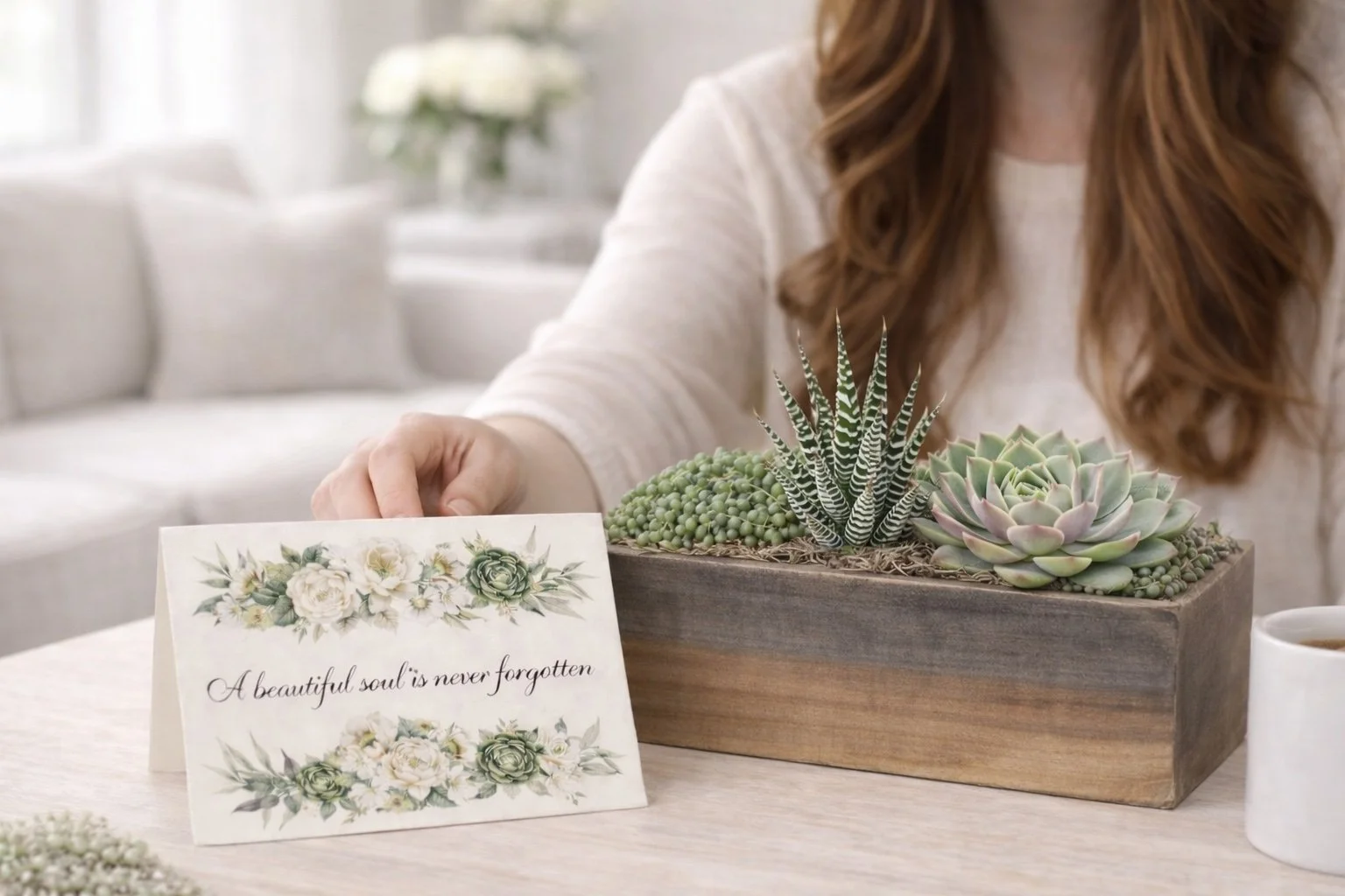 Send a heartfelt condolence gift with a live succulent and a personalized card.